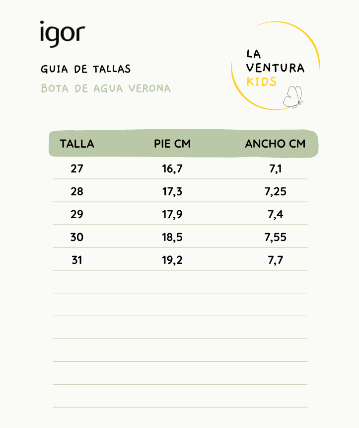La bota Verona de Igor es un modelo de agua con acabado mate y diseño monocolor, creado bajo el concepto barefoot wide. Su diseño mantiene una puntera más ancha, cero drop, flexible, y blandita, ofreciendo libertad de movimiento y comodidad en cada paso.